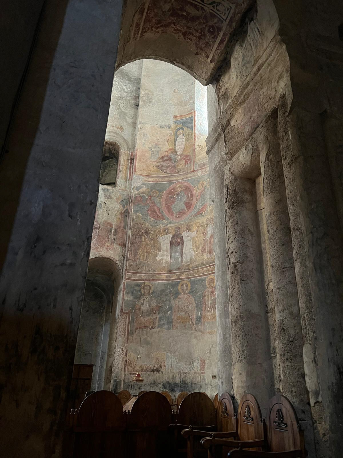 The interior of the cathedral is decorated with medieval frescoes depicting the lives of saints, and the tombs of figures such as Saint Joseph of Alaverdi, the martyr Ketevan, and several kings of Kakheti recall the history of the site. Every year, the Alaverdoba festival attracts pilgrims who come from afar to attend the ceremonies.