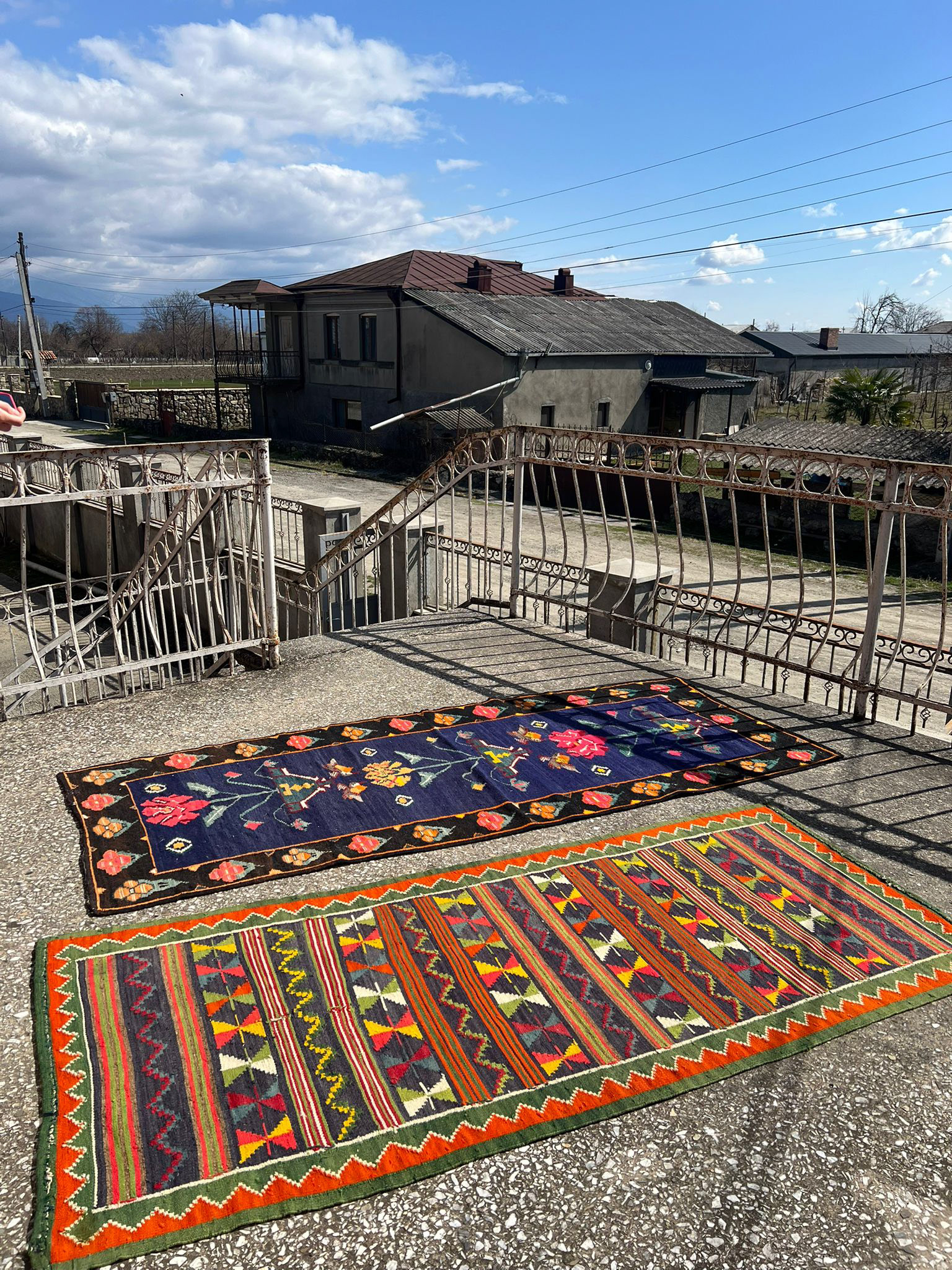 Weaving rugs in Georgia dates back to the 5th century B.C. and is rooted in long-standing artisanal traditions. The first knotted rugs are believed to have appeared between Mongolia and Turkestan. Excavations in Scythia uncovered the Pazyryk carpet, preserved for over 2,500 years. Located at the crossroads of several cultures, Georgia was influenced by Persian, Ottoman, and Caucasian styles, evident in the motifs and colors.